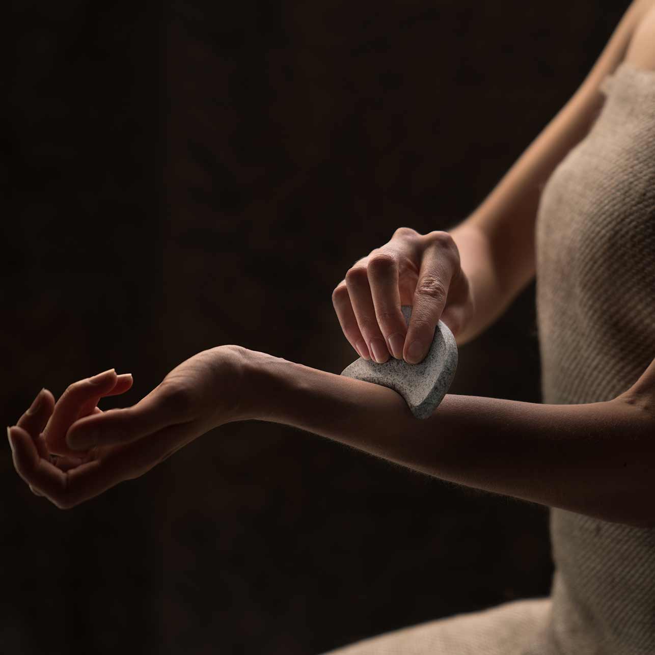 Le Guasha est un traitement utilisé en médecine traditionnelle chinoise qui vise à détendre les muscles, à stimuler le métabolisme du corps et à éliminer les déchets accumulés dans le corps. Si vous souhaitez intensifier le traitement, vous pouvez chauffer la pierre dans de l'eau chaude ou la refroidir au réfrigérateur avant utilisation